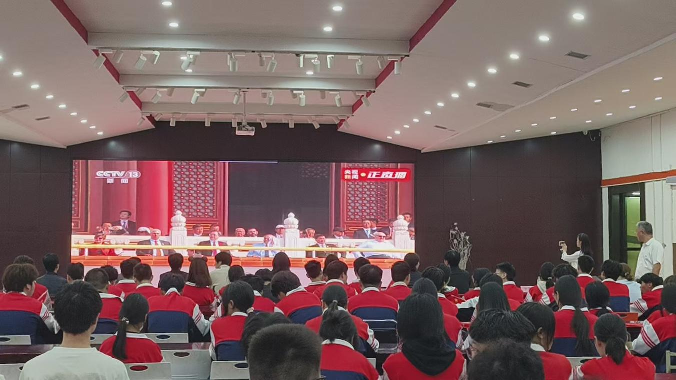 9月3日,物資職校200余名師生代表集中收看紀(jì)念大會(huì)實(shí)況直播,銘記歷史、緬懷先烈。習(xí)近平總書記的重要講話令學(xué)生備受鼓舞,增強(qiáng)了師生的民族自豪感與集體凝聚力,讓大家更清晰認(rèn)識(shí)到自身責(zé)任與使命。全體教師熱情高昂的表示將傳承弘揚(yáng)愛國主義精神,把抗戰(zhàn)精神融入課堂,牢記育人使命,為強(qiáng)國建設(shè)、民族復(fù)興作貢獻(xiàn)。廣大學(xué)生激情澎湃的表達(dá),將以先輩為榜樣,刻苦學(xué)習(xí)、堅(jiān)定信念,努力成長為擔(dān)當(dāng)民族復(fù)興大任的時(shí)代新人。