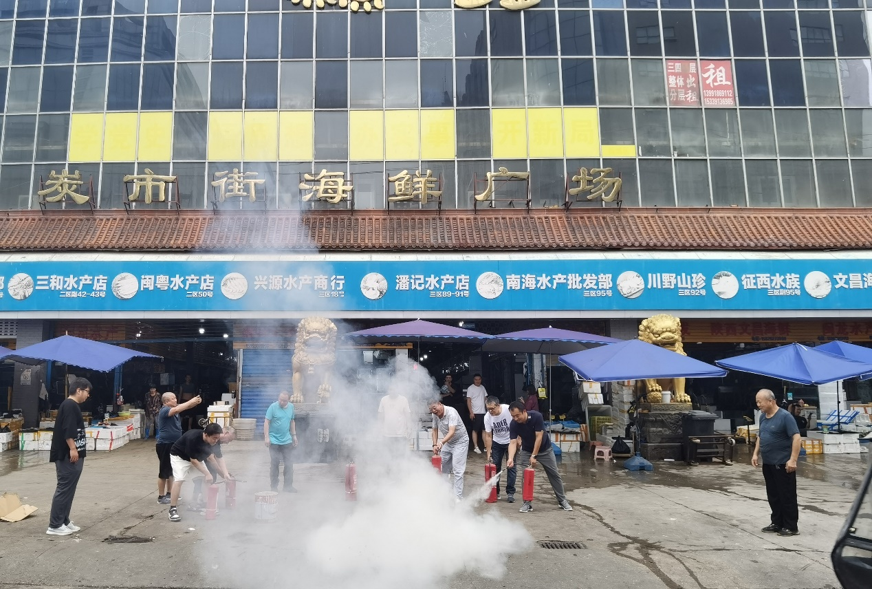 炎熱的夏季,是火災(zāi)事故的高發(fā)期,為確保公司安全生產(chǎn)工作平穩(wěn)有序,避免火災(zāi)事故的發(fā)生,按照公司年度安全消防培訓(xùn)計劃安排,7月23日下午,在水產(chǎn)市場大門外,公司組織了夏季消防應(yīng)急演練活動。演練活動由公司副總經(jīng)理葉雷主持,公司員工及商戶代表共30余人參加了應(yīng)急演練。