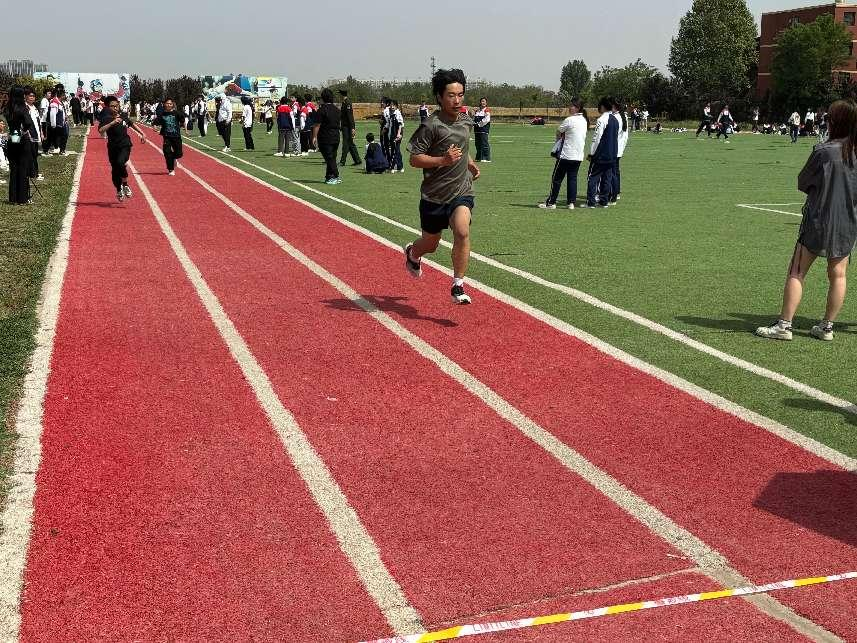 本次運動會分別設(shè)置了100米、200米、400米、800米、4×400米接力賽、60米障礙往返跑、跳遠(yuǎn)等比賽項目。隨著發(fā)令槍響,運動會各項比賽也緊鑼密鼓地開始了,寧靜的校園頓時沸騰起來。田徑賽場上,運動員們?nèi)_刺,100米短跑的最好成績達(dá)到12秒58;跳遠(yuǎn)賽場上,最好成績達(dá)到 2.83米。啦啦隊加油助威,志愿者貼心服務(wù),廣播站傳遞精彩瞬間,整個校園沉浸在熱烈的氛圍中。